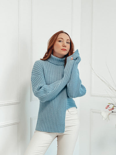 We all love ribbed sweaters! They are close to factory-made ones, but we know how much love is hidden in every stitch of a hand-made item! If you're thinking about how to make a basic sweater look unusual, add a creative detail - a dropped shoulder, or cables to one panel, or complete part of a panel in the same ribbing, but made horizontally!