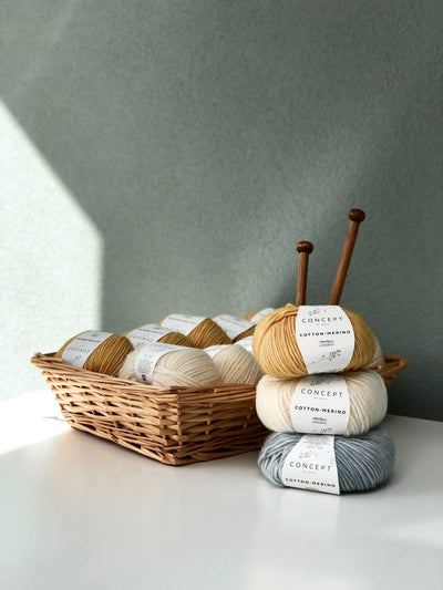 Dio you know something about chained yarns, the ones that are braided from a thinner thread sometimes with fluffy additions of another fiber? Cotton-Merino by Katia Concept is a perfect example of such yarn. It is a wonderful mid-season choice for all kids knitwear. This warm cotton yarn is a very soft mix of merino wool and cotton made in delicate pastel colors. Buy on Amazingwool while in stock.