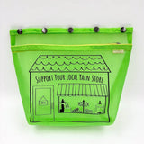 The bag has a beautiful illustration of a yarn shop on the front and measures 28 x 23 x 7.5cm. Available in various bright colours.