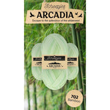 Go on an adventure with Scheepjes Arcadia! Scheepjes Arcadia is a gorgeous sock yarn, inspired by impressive landscapes from all over the world. It is a wear-resistant yarn made from 75% Superwash Virgin Wool and 25% Polyamide in both striped colourways and solid colours. The yarn is warm but still has the breathable quality of wool. It is wear-resistant and easy to care for, thanks to the polyamide component. Arcadia has great stitch definition, feels slightly rustic to the touch, but softens during use. The Scheepjes Arcadia collection offers both striped colourways and solid colours, which grants plenty of options for creating your very own knitted socks. For example, you can knit a striped sock with heel and toes in solid shades. Arcadia is of course also suitable for all sorts of clothing and accessories, such as sweaters and scarves.