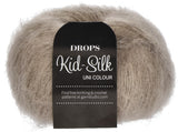 A luxurious, light brushed yarn in an exclusive mix of 75% mohair super kid and 25% silk, Drops Kid-Silk is feather light, and will give garments a sophisticated look, whether used alone or held together with other yarns.