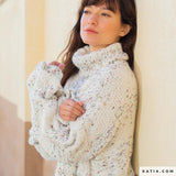 Fantasy yarn with a soft slub base dotted with subtle multicolour speckles. Knit a woman's cable jumper with a high neckline or long jackets with revere collars using Katia Azulejo. This versatile yarn is also perfect for making kid's cardigans and sweaters thanks to its easy wash properties. Thanks to its handy thickness you will only need 6 balls for an XS size sweater.