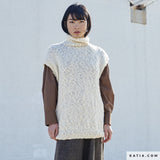 50 g balls of yarn with 100 metres. Recommended knitting needle size: 9-10 US / 5,5-6 mm and crochet hook size: K10 US / 6,5-7 mm. 11 balls of yarn are needed to make a woman's size 12 short sleeve jumper. For the 4x4" / 10x10cm tension square work 16 stitches and 22 rows. Hand wash. Do not tumble dry.