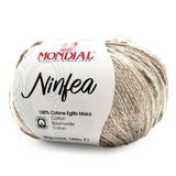 Mondial Ninfea is made of Egyptian Makò cotton, a high-quality fiber ideal to get a lightweight, soft, and hypoallergenic yarn. Its thread looks like a fine chain presenting multicolor specks. Besides its marbled effect, these specks will also provide a relief texture to your garments. Discover its original texture and colors!