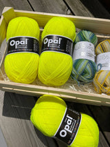 Opal Uni is a striking collection of bright and colorful solid shades, perfect for creating comfortable socks, pullovers, and much more. It is also wonderful as a contrasting color for heels and toes, or just to mix & match with other hues to create your own unique color palette. This soft and durable 4-ply yarn is made from 75% virgin wool (superwash) and 25% polyamide. Each ball weighs 100g and holds 425 m of yarn. Washable up to 40°C. Recommended needle size is 2.50mm. Available in a wide range of colors and in various assortments with 12 or 13 colors.