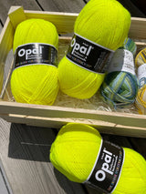 Opal Uni is a striking collection of bright and colorful solid shades, perfect for creating comfortable socks, pullovers, and much more. It is also wonderful as a contrasting color for heels and toes, or just to mix & match with other hues to create your own unique color palette. This soft and durable 4-ply yarn is made from 75% virgin wool (superwash) and 25% polyamide. Each ball weighs 100g and holds 425 m of yarn. Washable up to 40°C. Recommended needle size is 2.50mm. Available in a wide range of colors and in various assortments with 12 or 13 colors.