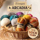 Go on an adventure with Scheepjes Arcadia! Scheepjes Arcadia is a gorgeous sock yarn, inspired by impressive landscapes from all over the world. It is a wear-resistant yarn made from 75% Superwash Virgin Wool and 25% Polyamide in both striped colourways and solid colours. The yarn is warm but still has the breathable quality of wool. It is wear-resistant and easy to care for, thanks to the polyamide component. Arcadia has great stitch definition, feels slightly rustic to the touch, but softens during use. The Scheepjes Arcadia collection offers both striped colourways and solid colours, which grants plenty of options for creating your very own knitted socks. For example, you can knit a striped sock with heel and toes in solid shades. Arcadia is of course also suitable for all sorts of clothing and accessories, such as sweaters and scarves.