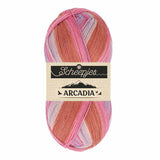 Go on an adventure with Scheepjes Arcadia! Scheepjes Arcadia is a gorgeous sock yarn, inspired by impressive landscapes from all over the world. It is a wear-resistant yarn made from 75% Superwash Virgin Wool and 25% Polyamide in both striped colourways and solid colours. The yarn is warm but still has the breathable quality of wool. It is wear-resistant and easy to care for, thanks to the polyamide component. Arcadia has great stitch definition, feels slightly rustic to the touch, but softens during use. The Scheepjes Arcadia collection offers both striped colourways and solid colours, which grants plenty of options for creating your very own knitted socks. For example, you can knit a striped sock with heel and toes in solid shades. Arcadia is of course also suitable for all sorts of clothing and accessories, such as sweaters and scarves.