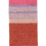 The yarn is available in 7 striped colourways and 5 solid colours. One ball weighs 100 grams and holds 396 metres of yarn.