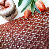Finished measurements depend on the gauge, but these balls are perfectly seized to be enough for a big and cozy wrap and measures around 140x130 cm when blocked.