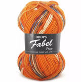 Both print and long print colours in DROPS Fabel are produced with a method called “fancy dyeing” that differs from other methods in that each dye lot has small variations in both pattern and nuance. This is no fault or defect, but part of the yarn's character.