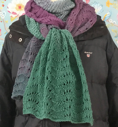 The scarf will measure approx. 250 cm x 33 cm depending on how loose or tight you knit.